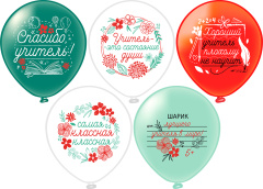 Шар12'' шелк рис. 1ст. 2цв. Шарики учителю 5 дизайнов (25 шт./уп.) /БК